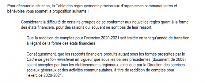 Le texte qui suit a été transmis par la Table aux responsables du MSSS, afin d'obtenir d'urgence des réponses aux questions soulevés par les groupes et par les regroupements et souligner nos positions quant au [...]